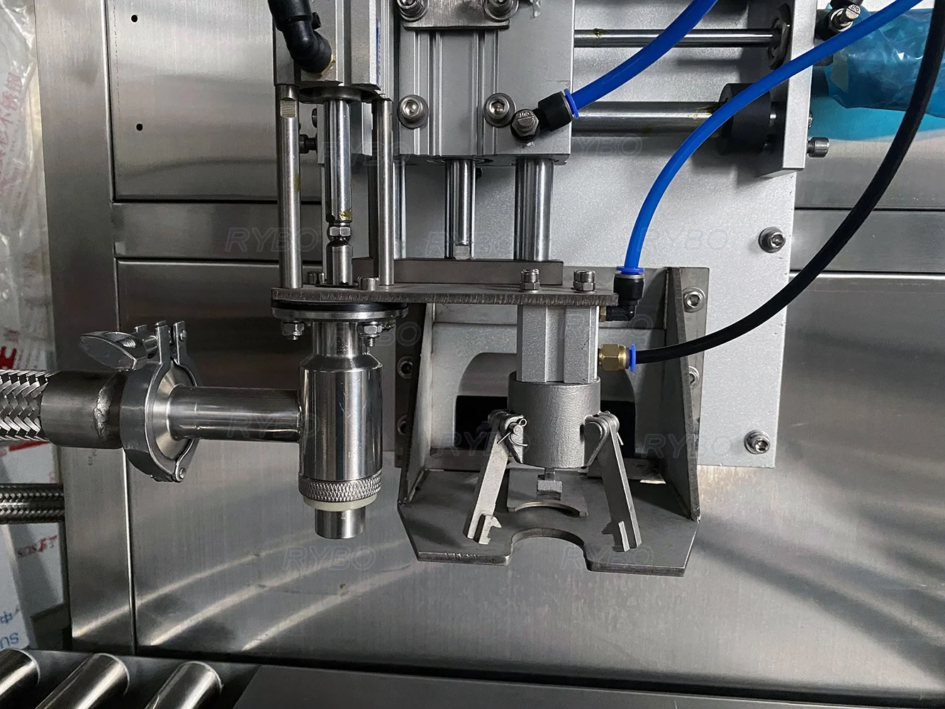 It can automatically open the cap, fill, then close the cap, people only need to put the empty bag on the machine, then take the filled bag away from the machine.